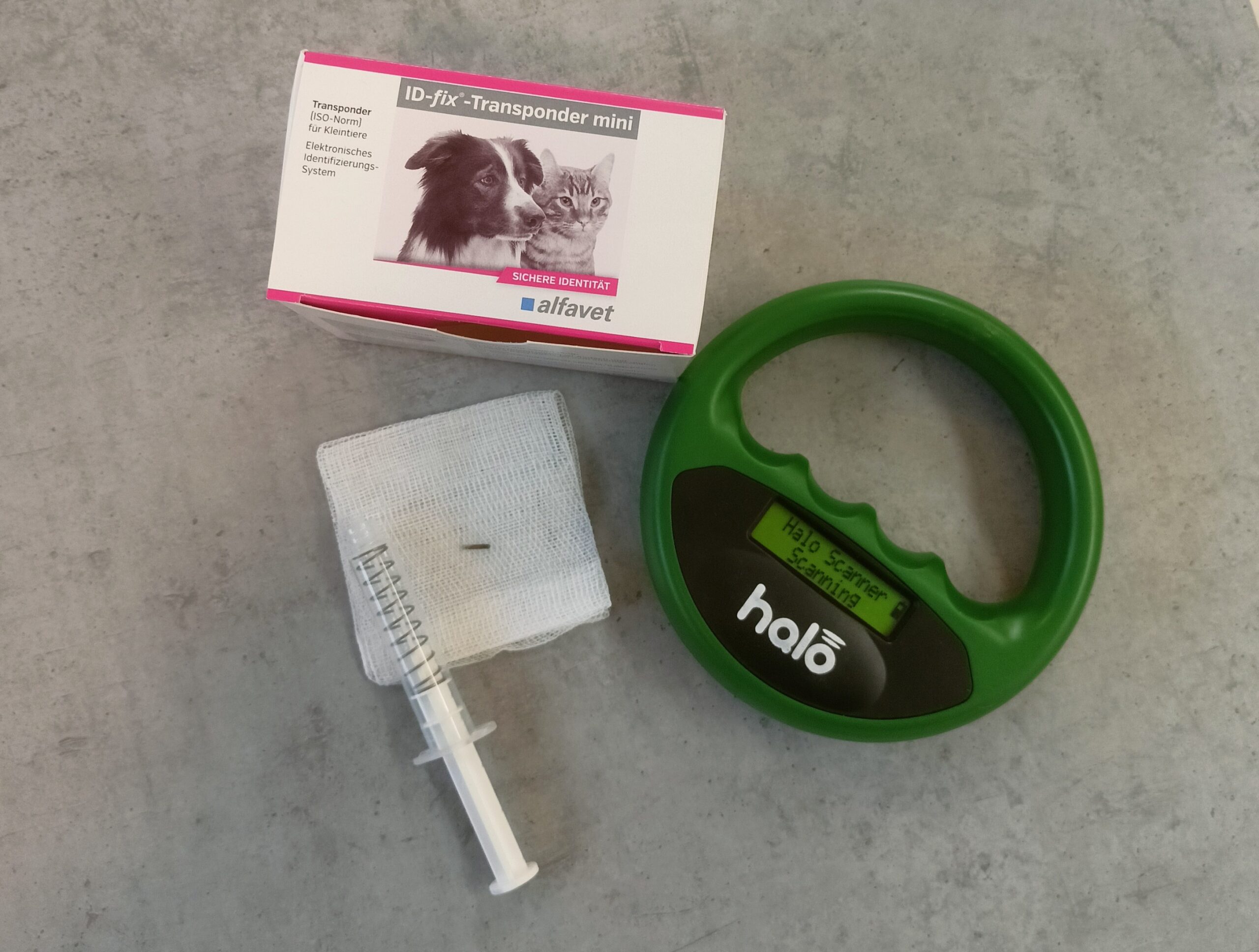Der Mikrochip kann auch im wachen Zustand oder während einer Narkose (beispielsweise der Kastration, besonders bei den Katzen wird die Narkose oft dafür mit genutzt) mit einer relativ großen Kanüle an die linke Halsseite implantiert werden. Von außen ist es zwar nicht direkt ersichtlich, ob das Tier einen Besitzer oder eine Besitzerin hat, aber die Nummer ist einzigartig und im Regelfall das Leben lang nutzbar. (In seltenen Fällen kann ein Chip mal verschwinden).